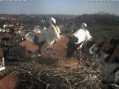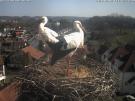 Nachdem die beiden Mittags kurz auf dem Nest waren, sind sie am Abend zusammen eingesegelt.___ Die Kommentarfunktion geht nicht mehr. ____ 10.2. Mehrere Störche sind heute zurückgekommen. Storchennest Wasserschloss ist besetzt. Richthofenstrasse wurde Nest entfernt und Abweisbügel angebracht. Mal sehen wo diese Störche nun ein Nest bauen. Hätten heute gerne Webcamnest auf Brauereikamin gehabt.